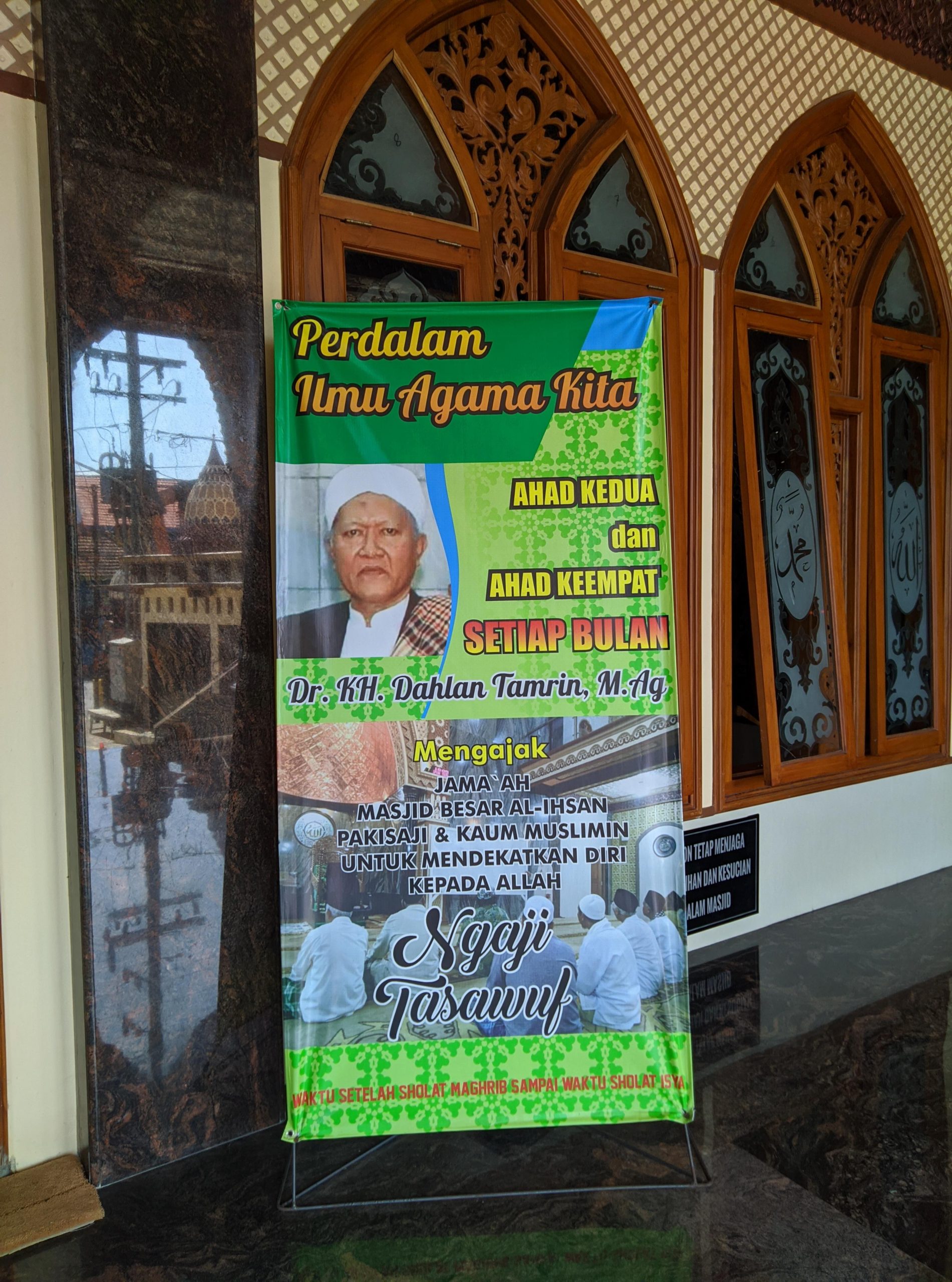 [Pakisaji, 2020] Sebagai wadah untuk memperbaiki kualitas diri sendiri dan meningkatkan ibadah kita kehadirat Allah SWT maka takmir menghadirkan Kyai Dahlan Tamrin sebagai pengasuh kajian dalam bidang Tasawuf.